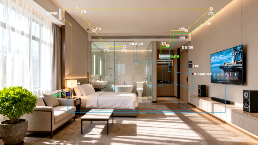 The combination of RS485 and PLC is suitable for various room types and optimizes traditional RCU wiring. Its weak-control-strong approach allows for safe and reliable maintenance without power outages.
